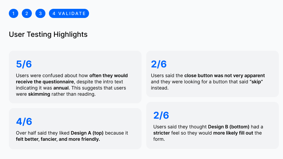 When we asked the business owners, we came to a dead end. Doing my research, I found that customers are turned off by the many steps, repetitive questions, and not knowing how long the process will take.